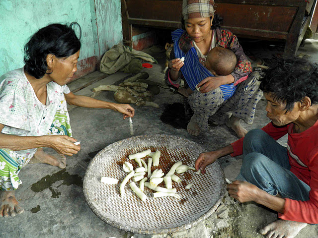 Vào chạn bếp đồng bào, lạnh tênh. Bữa trưa nhiều gia đình chỉ có sắn và sắn, Nhà khá hơn có chút ngô. Nhà tốt hơn chút còn hai bữa gạo nấu cháo cho trẻ con ăn.